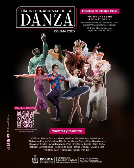 Consulta la programación del tercer Maratón de Master Class y prepárate para subir de nivel. Con artistas de Colima, Jalisco, Puebla y Cuba, es una gran oportunidad para seguir aprendiendo, perfeccionar técnicas y fortalecer tu talento escénico.