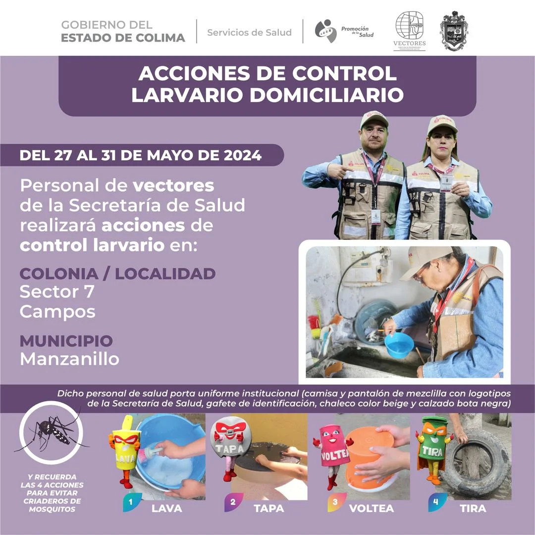 Esta semana, personal de vectores visitará localidades del municipio de Manzanillo como parte del refuerzo de las acciones de combate al dengue, zika y chikungunya.
