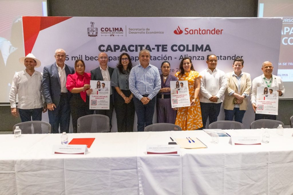 La Secretaría de Desarrollo Económico (Sedeco) del Gobierno del Estado de Colima, en alianza con Banco Santander México, lanzó el programa Capacita-Te Colima, una iniciativa que pone al alcance de la población 5 mil becas de capacitación gratuita para fortalecer las habilidades y competencias laborales de las y los colimenses.