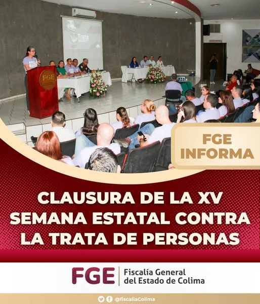 La Fiscalía General del Estado de Colima participó en la clausura de la XV Semana Estatal contra la Trata de Personas, un espacio que reunió a instituciones de los tres órdenes de gobierno, reafirmando el compromiso de trabajar de manera coordinada en la prevención, atención y erradicación de este delito.