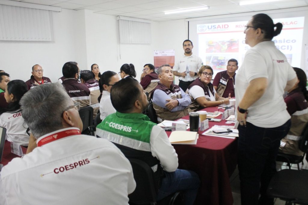 El curso impartido por personal calificado en gestión de emergencias sanitarias de la Coespris y de la Unidad Estatal de Protección Civil (UEPC), abordó temas clave como: mando y planificación, operaciones y logística, administración y finanzas, seguridad, manejo de información pública y comunicación interinstitucional.