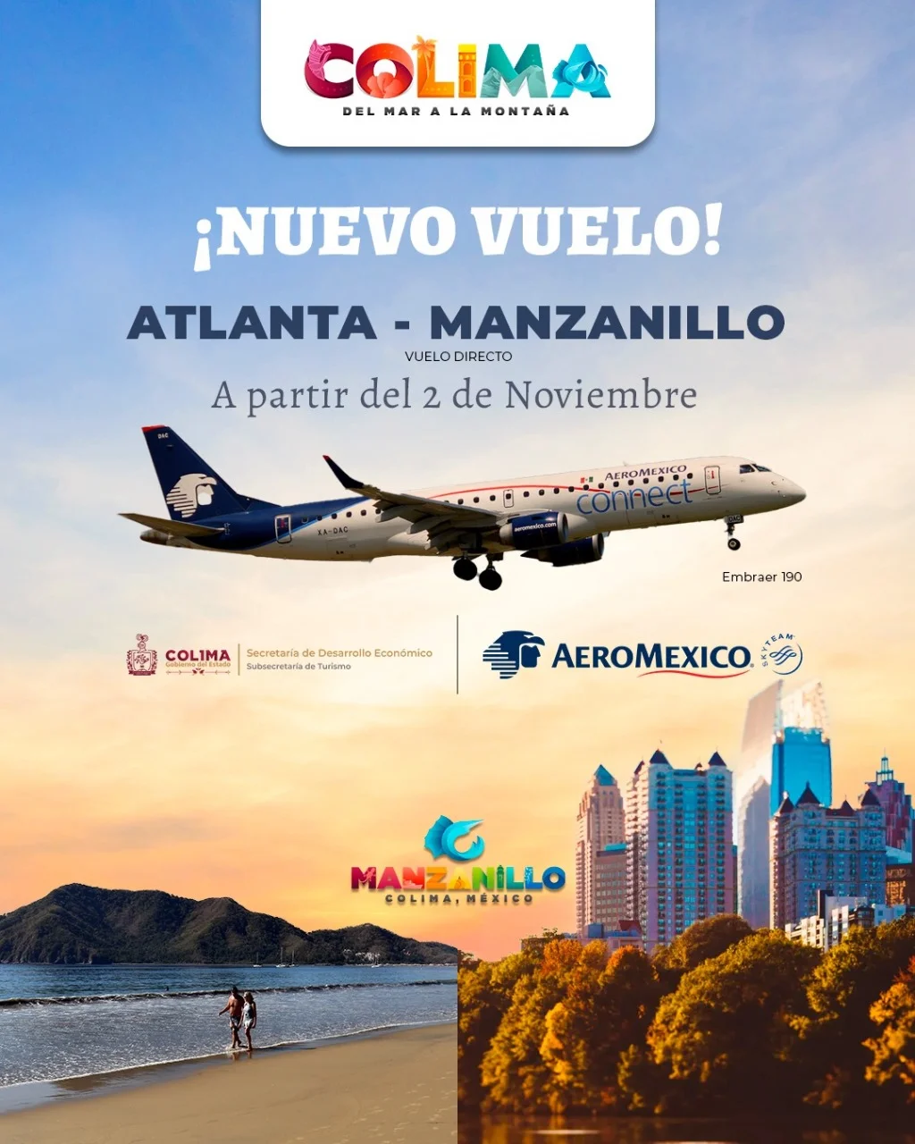 - El nuevo vuelo directo entre Atlanta y Manzanillo será la mejor conexión para descubrir el encanto del Pacífico mexicano