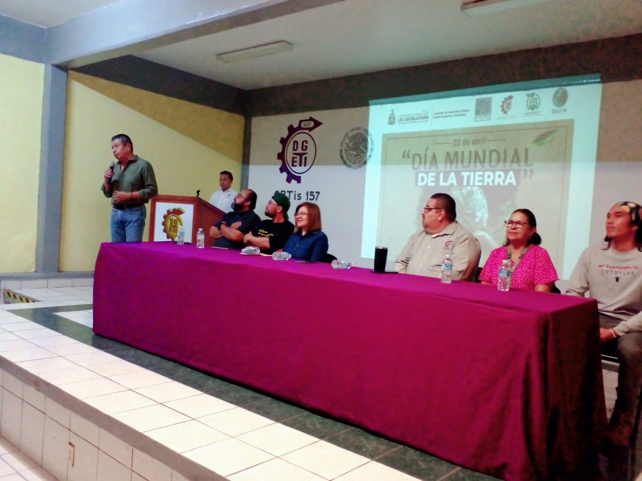 El Diputado Jaime Enrique Sotelo Garcia, presidente de la Comisión de Desarrollo Urbano, Medio Ambiente y Movilidad, encabezó un taller en el marco del Día Mundial de la Tierra, dirigido a estudiantes del CBTIS 157. En el acto de inauguración estuvieron el profesor Sergio Urquiza García, director de la institución y la maestra Sandra Pilar Solano Gutiérrez, Comisionada responsable de la DGETI en el Estado de Colima.