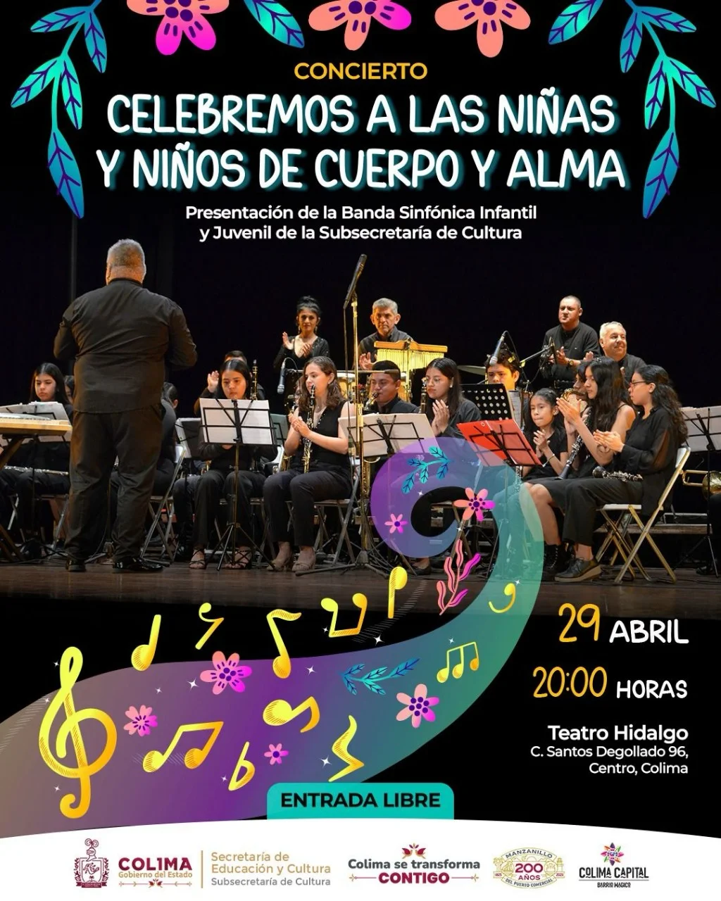 La Subsecretaría de Cultura del Gobierno del Estado de Colima ha anunciado una cartelera especial en el Teatro Hidalgo para celebrar el Día del Niño y la Niña, con los dos conciertos ‘Aventuras de Tierra y Mar’ de la Camerata Infantil y Juvenil Alfredo Ponce y ‘Celebremos a las Niñas y Niños de Cuerpo y Alma’ de la Banda Sinfónica Infantil y Juvenil de la instancia estatal de Cultura.