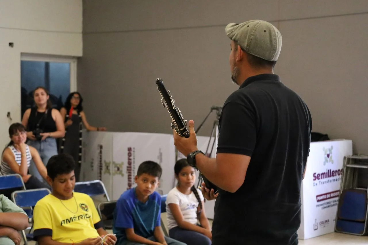En esta presentación especial para las infancias, las niñas y los niños presentes pudieron conocer los instrumentos que componen un ensamble de cámara, además de que participaron en juegos y dinámicas que propiciaron la convivencia armónica, el aprendizaje y la integración comunitaria.
