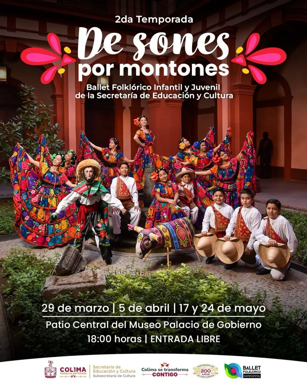 La Subsecretaría de Cultura del Gobierno del Estado de Colima anuncia la segunda temporada del espectáculo ‘De sones por montones’, a cargo del Ballet Folklórico Infantil y Juvenil de la Secretaría de Educación y Cultura (SEyC), que ofrecerá cuatro funciones gratuitas en el Museo Palacio de Gobierno de Colima.