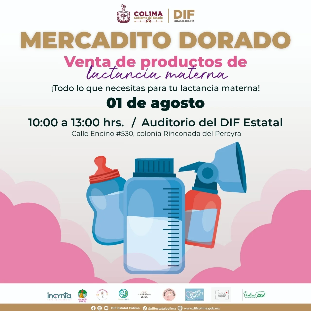 Como parte de las actividades programadas, se ofrecerán dos charlas informativas abiertas al público en general en el auditorio del DIF a partir de las 10:00 de la mañana. La primera, ‘Cómo lograr una lactancia materna exitosa’, abordará temas sobre la anatomía y fisiología de la mama, el correcto agarre, la creación de un banco de leche y diversas posiciones para la lactancia, entre otros. Además, se instalará el ‘Mercadito Dorado’, donde se venderán productos locales relacionados con la lactancia materna.
