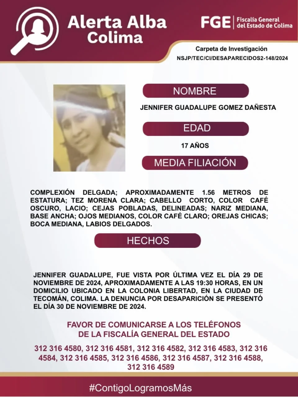 Favor de comunicarse a los teléfonos de la Fiscalía General del Estado. 312 316 45 80, 312 316 45 81, 312 316 45 82, 312 316 45 83, 312 316 45 84, 312 316 45 85, 312 316 45 86, 312 316 45 87, 312 316 45 88, 312 316 45 89.