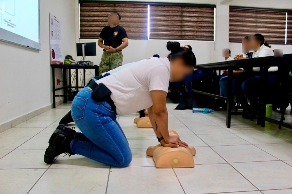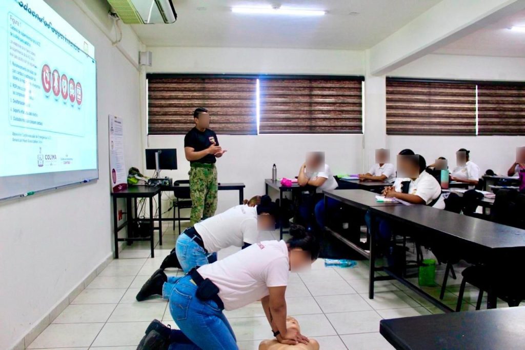 Como parte del Curso de Formación Inicial para la Policía de Proximidad, las y los cadetes reciben diferentes cursos de capacitación en rubros vitales, como primeros auxilios, reanimación cardiopulmonar (RCP) y atención de emergencias, habilidades esenciales para brindar una respuesta inmediata y salvar vidas en situaciones críticas, informa la Secretaría de Seguridad Pública del Gobierno del Estado de Colima.