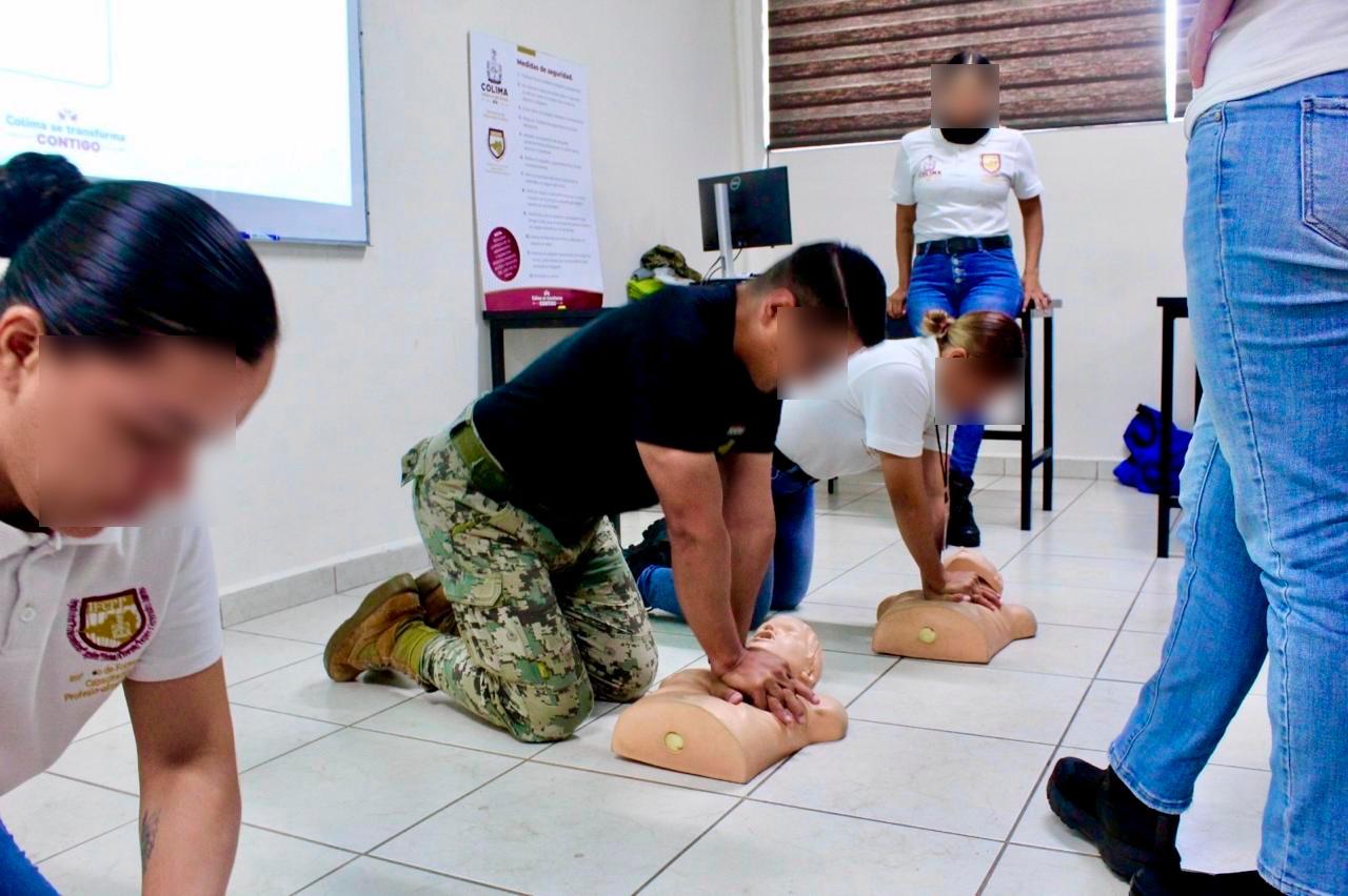 Como parte del Curso de Formación Inicial para la Policía de Proximidad, las y los cadetes reciben diferentes cursos de capacitación en rubros vitales, como primeros auxilios, reanimación cardiopulmonar (RCP) y atención de emergencias, habilidades esenciales para brindar una respuesta inmediata y salvar vidas en situaciones críticas, informa la Secretaría de Seguridad Pública del Gobierno del Estado de Colima.