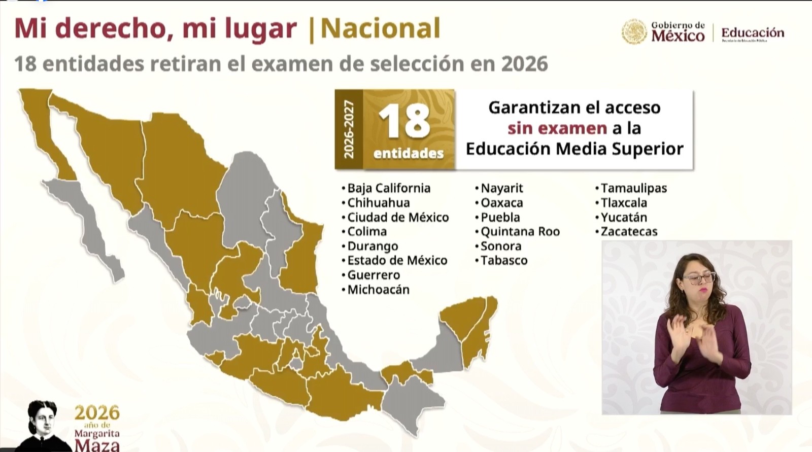 Durante la Conferencia del Pueblo este lunes, la subsecretaria de Educación Media Superior de la SEP, Tania Rodríguez Mora, informó que este modelo de acceso y asignación de espacios ya se implementa en 18 entidades de la República Mexicana –entre ellas Colima-, donde se ha eliminado el examen de selección como requisito de ingreso; salvo en instituciones que por normatividad interna mantienen sus propios procesos.