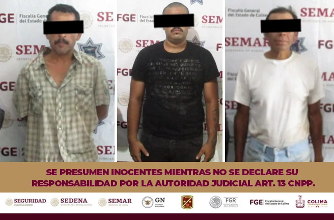La Secretaría de Seguridad Pública (SSP) del Gobierno del Estado de Colima informa que los tres detenidos fueron puestos a disposición de la autoridad ministerial, para continuar con su proceso legal correspondiente.