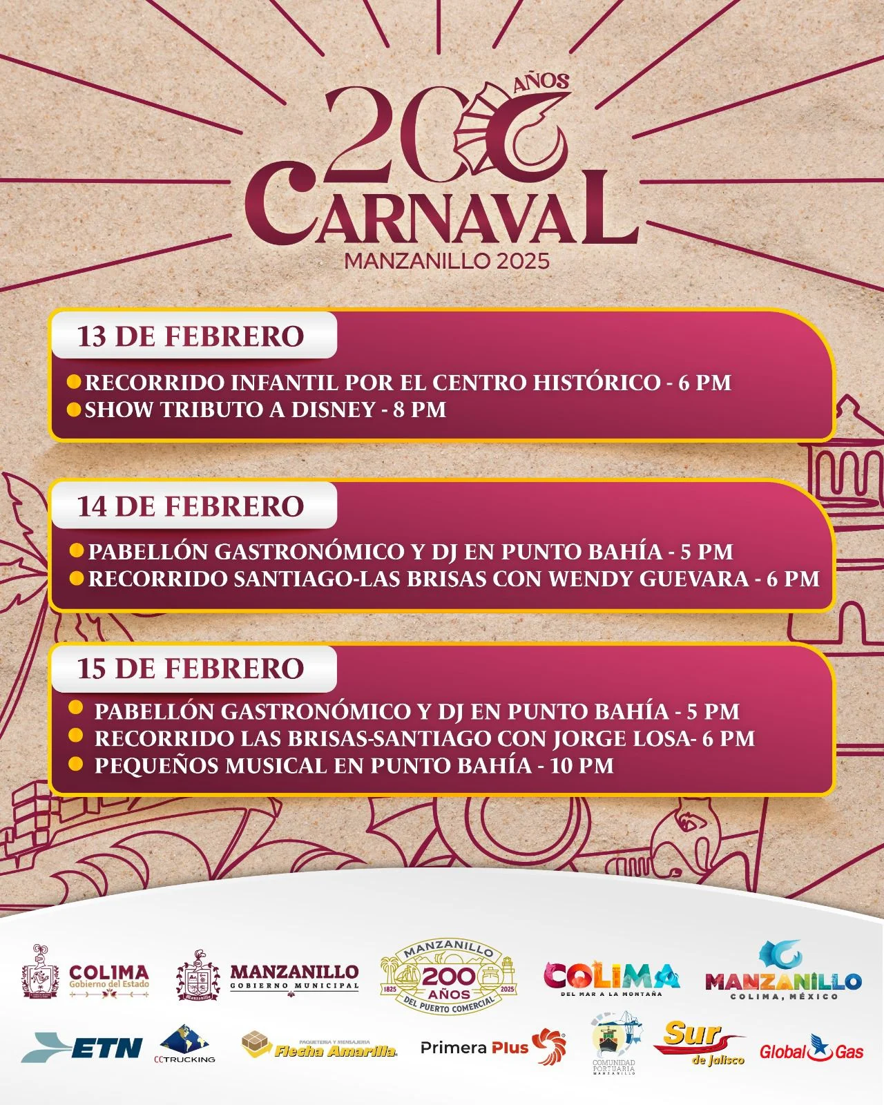 El Gobierno de Manzanillo, a través de la dirección de Turismo, te invita este fin de semana a celebrar los 200 Años del Puerto en el tradicional carnaval.