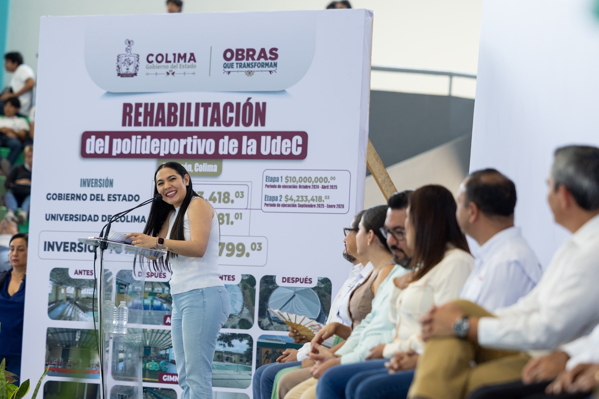 Para esta obra, el Gobierno del Estado de Colima aportó 14.23 millones y la Universidad de Colima 6.87 millones; la rehabilitación permitió recuperar este espacio, que incluye el gimnasio y la cancha de futbol rápido, y que llevaba diez años sin poder usarse por su deterioro.