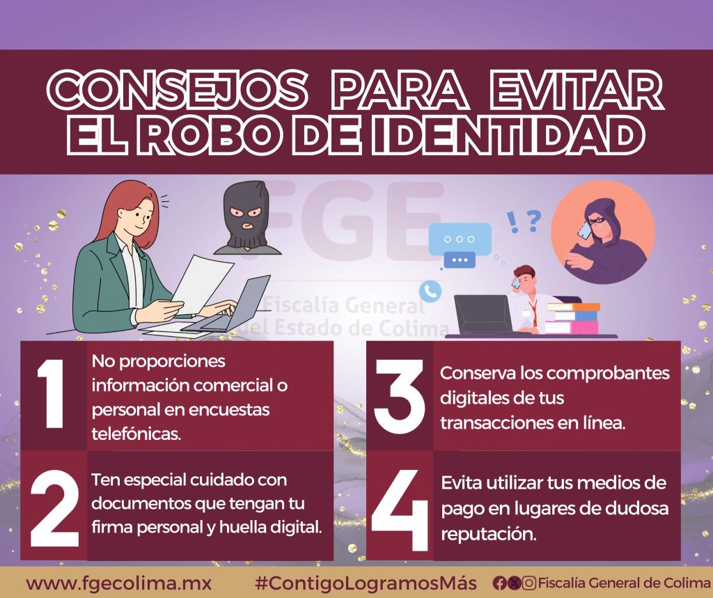 En un mundo cada vez más digital, proteger tu información personal es fundamental para no ser víctima de robo de identidad. Evita compartir datos sensibles en redes sociales o llamadas desconocidas, utiliza contraseñas seguras y diferentes para cada cuenta, y activa la verificación en dos pasos siempre que sea posible. También es importante revisar constantemente tus estados de cuenta y reportar cualquier movimiento sospechoso. Mantente alerta ante correos o mensajes fraudulentos, ya que la prevención y la desconfianza inteligente son tus mejores aliados para cuidar tu identidad.