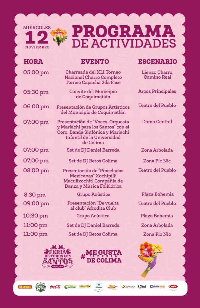 A las 5:30 de la tarde, el municipio de Coquimatlán es el invitado especial del día, presentando su convite desde los arcos de la entrada principal de la #FeriaDeColima, seguido de la presentación de sus grupos artísticos a partir de las 6:00 de la tarde en el Teatro del Pueblo.