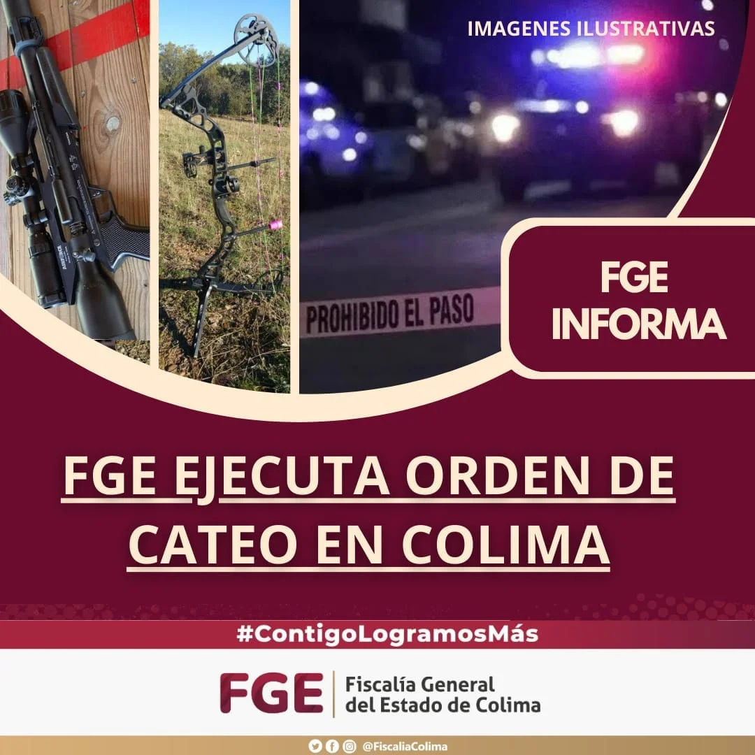 La Fiscalía General del Estado (FGE) al ejecutar una orden de cateo autorizada por un Juez de Control, aseguró un rifle de aire comprimido, así como las municiones del mismo, un arco para lanzar flechas, además de indicios e instrumentos que eran utilizados para cometer conductas ilícitas.