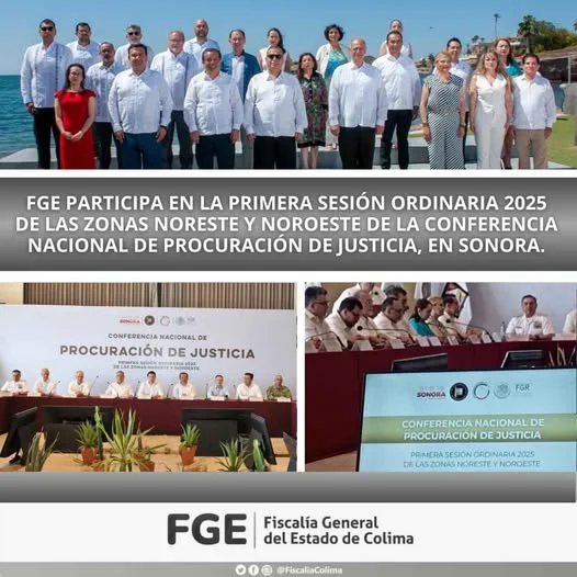 El Fiscal General del Estado, Bryant Alejandro García Ramírez, participó en la Primera Sesión Ordinaria 2025 de las Zonas Noreste y Noroeste de la Conferencia Nacional de Procuración de Justicia que se llevó a cabo en San Carlos, Guaymas en el Estado de Sonora, con el propósito de analizar y celebrar acuerdos que coadyuven en el fortalecimiento de las instituciones de procuración de justicia.