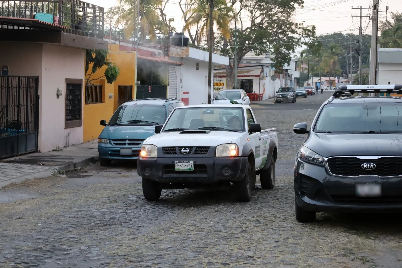 La dependencia estatal indicó que con unidades pesadas se fumiga este lunes en la colonia San Pablo (Colima), colonias Sor Juana Inés de la Cruz, Santa Elena y fraccionamiento Limonero (Tecomán) y colonias Cuauhtémoc y Constitución (Manzanillo).
