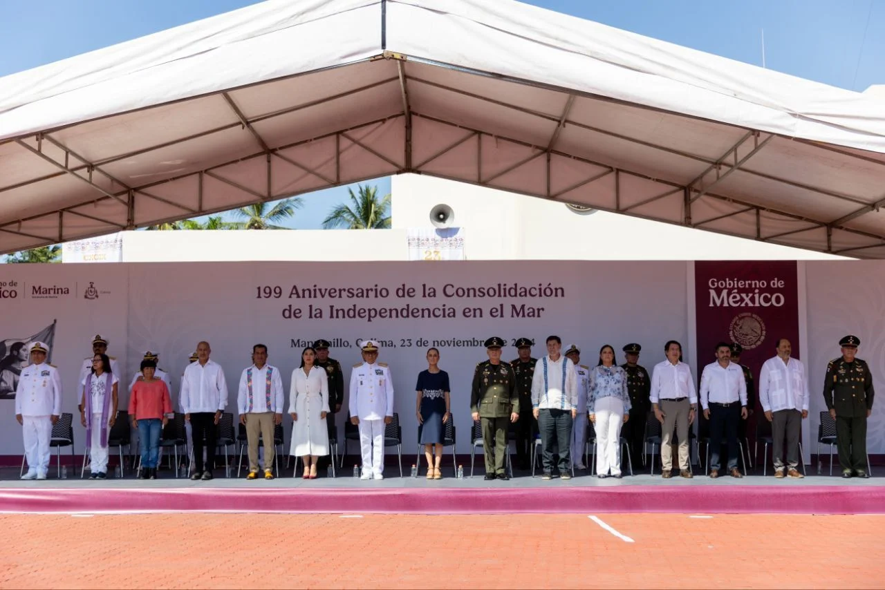 La gobernadora del estado de Colima, Indira Vizcaíno Silva, participó este sábado en la ceremonia conmemorativa encabezada por la presidenta de México, Claudia Sheinbaum Pardo, por el 199 aniversario de la Consolidación de la Independencia en el Mar, desde el Puerto de Manzanillo.