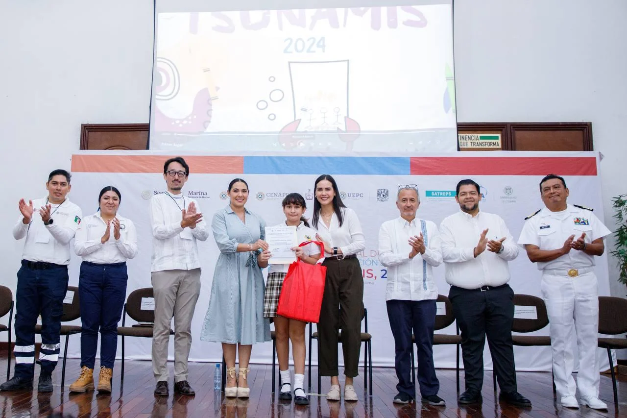 En este foro, que reunió a más de 200 asistentes, integrantes de distintas dependencias de prevención y atención de emergencias, fueron entregados los reconocimientos y premios a dos de las cuatro niñas y niños que resultaron ganadores en el Concurso Infantil de Dibujo sobre Tsunamis.