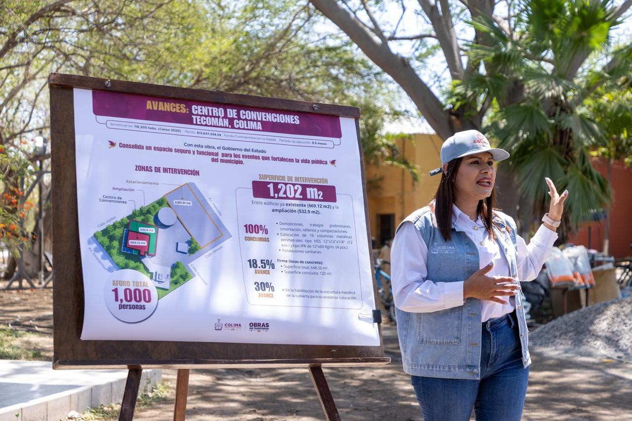 La tarde de este lunes, la gobernadora de Colima, Indira Vizcaíno Silva, acompañada por la secretaria de Infraestructura, Desarrollo Urbano y Movilidad (Seidum), Marisol Neri León, supervisó una más de las #ObrasQueTransforman Tecomán, como es la construcción del Centro de Convenciones, infraestructura que se consolida como un espacio seguro y funcional para los eventos que fortalecen la vida pública en el municipio tecomense.