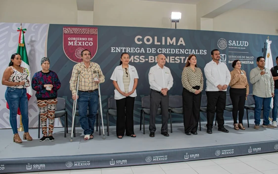 Desde Colima, el enlace con ‘La Mañanera’ se realizó desde el Centro de Salud “Gustavo Alberto Vázquez Montes”, uno de los espacios que fue completamente renovado gracias a este esfuerzo a través de IMSS-Bienestar. Ahí recibieron simbólicamente sus credenciales José Guillermo Valencia Macías, Ma. Elena Cortés Fuentes, Cristian Bonoz Ramírez, Alondra Teresa Rivera Huízar y Álvaro Palacios Trejo.