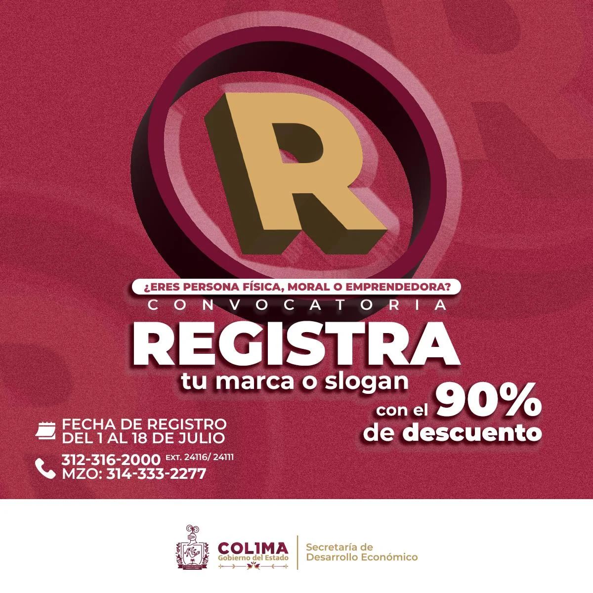 El Gobierno del Estado de Colima, a través de la Secretaría de Desarrollo Económico (Sedeco), en conjunto con el Instituto Mexicano de la Propiedad Industrial (IMPI), anunciaron la apertura de la convocatoria para que emprendedoras y emprendedores obtengan un descuento de hasta el 90 por ciento en el registro de marcas o avisos comerciales (eslogan).
