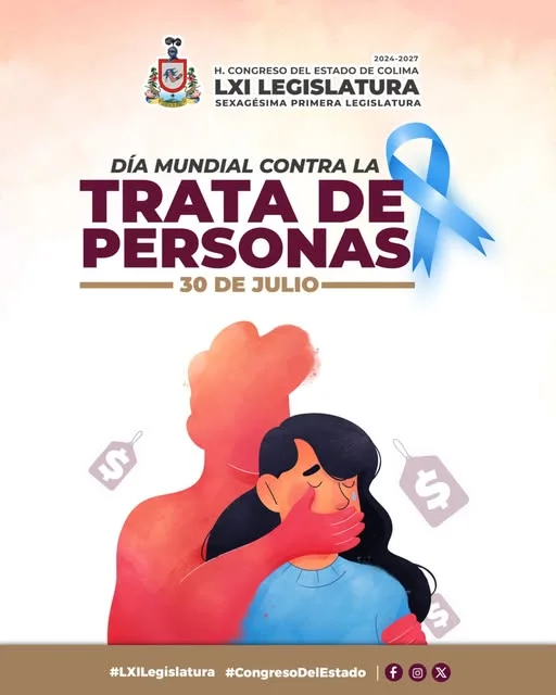#Efeméride | Hoy se conmemora en todo el mundo el Día Mundial contra la Trata de Personas. Alzamos la voz por quienes han sido víctimas de este delito que vulnera los derechos humanos y la dignidad. Desde el H Congreso del Estado de Colima reafirmamos nuestro compromiso con seguir legislando para garantizar la prevención, la justicia y la protección de las víctimas.