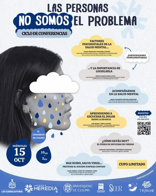 #Invitación | El H. Congreso del Estado de Colima invita al foro “Las personas no somos el problema”, en donde se abordarán distintas temáticas relacionadas con la salud mental y las necesidades en la legislación actual. Se llevará a cabo este miércoles 15 de octubre a partir de las 10:00 horas en el Pleno de este Poder Legislativo.
