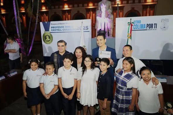#Congreso | La diputada Evangelina Bustamante, presidenta de la Comisión de Educación, Cultura y Ciencia, acudió la noche de este jueves en representación del H. Congreso del Estado de Colima, al jardín Torres Quintero de la capital colimense, a la sesión solemne de entrega de la Presea al Mérito Docente “Prof. Jorge Castell Guerrero 2025”.