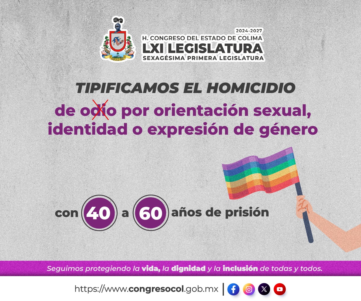 En el Poder Legislativo, seguimos dando pasos firmes contra la discriminación. Tipificamos el homicidio de odio motivado por orientación sexual, identidad o expresión de género, con penas de 40 a 60 años de prisión y multas severas. Seguimos protegiendo la vida, la dignidad y la inclusión de todas y todos ![]()