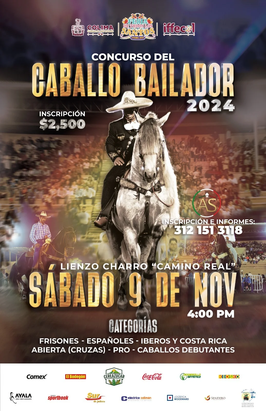 El Instituto de Fomento de Ferias y Exposiciones del Estado de Colima (Iffecol) invita a participar en el ‘Concurso del Caballo Bailador’, el 9 de noviembre a partir de las 4:00 de la tarde en el Lienzo Charro Camino Real, donde podrán participar con las categorías de Frisiones, Españoles, Iberos y Costa Rica.