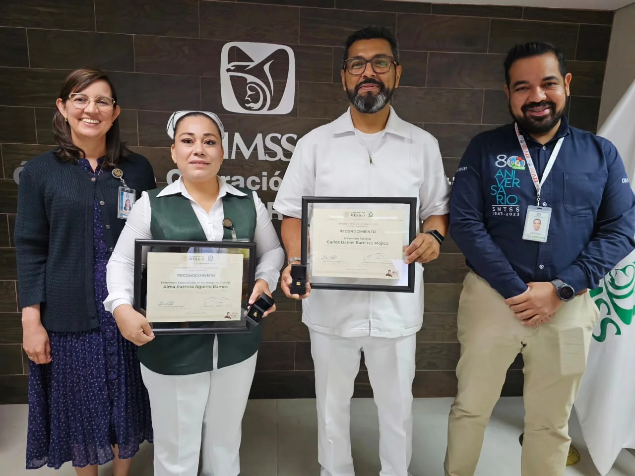 El Instituto Mexicano del Seguro Social (IMSS) en Colima a través de su titular la doctora Fátima Borrego Perez y el Secretario General de la Sección XXV Colima del Sindicato Nacional de Trabajadores del Seguro Social (SNTSS) licenciado Raúl Antonio Martínez Llerenas, reconocieron el trabajo de dos profesionales de enfermería por su compromiso con la salud y el bienestar de la población.