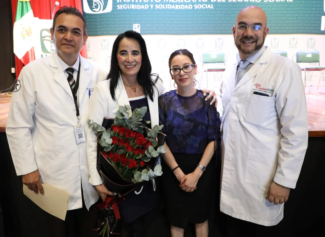 La doctora homenajeada destacó la colaboración con las Direcciones de Prestaciones Médicas y de Innovación y Desarrollo Tecnológico del Seguro Social durante los últimos tres años en que se desempeñó como titular de la Coordinación de Innovación en Salud, donde trabajó por la transformación del Instituto y diversos proyectos en beneficio de los derechohabientes.