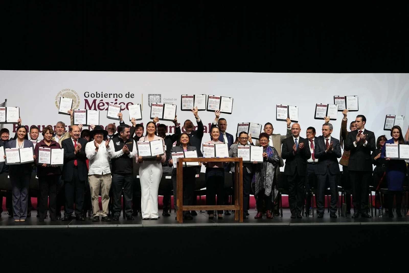 La titular del Poder Ejecutivo estatal participó también en el Encuentro Nacional Municipal convocado por la presidenta Claudia Sheinbaum, al que asistieron gobernadoras, gobernadores, así como presidentas y presidentes municipales de todo el país, y donde se sumó a la firma del Convenio para la creación del Componente Indígena del Fondo de Aportaciones para la Infraestructura Social (FAIS).