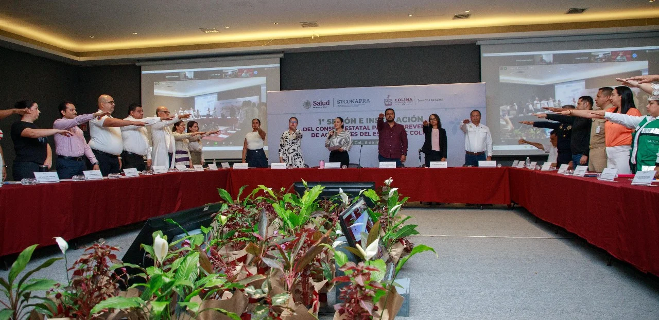 Durante esta primera sesión, la mandataria colimense, en su calidad de presidenta honoraria del Coepra, tomó la protesta a quienes integran este órgano que preside el secretario de Salud, Víctor Manuel Torrero Enríquez; mientras que Martha Irazema Cárdenas Rojas, directora de los Servicios de Salud, llevó los trabajos del mismo como secretaria técnica.