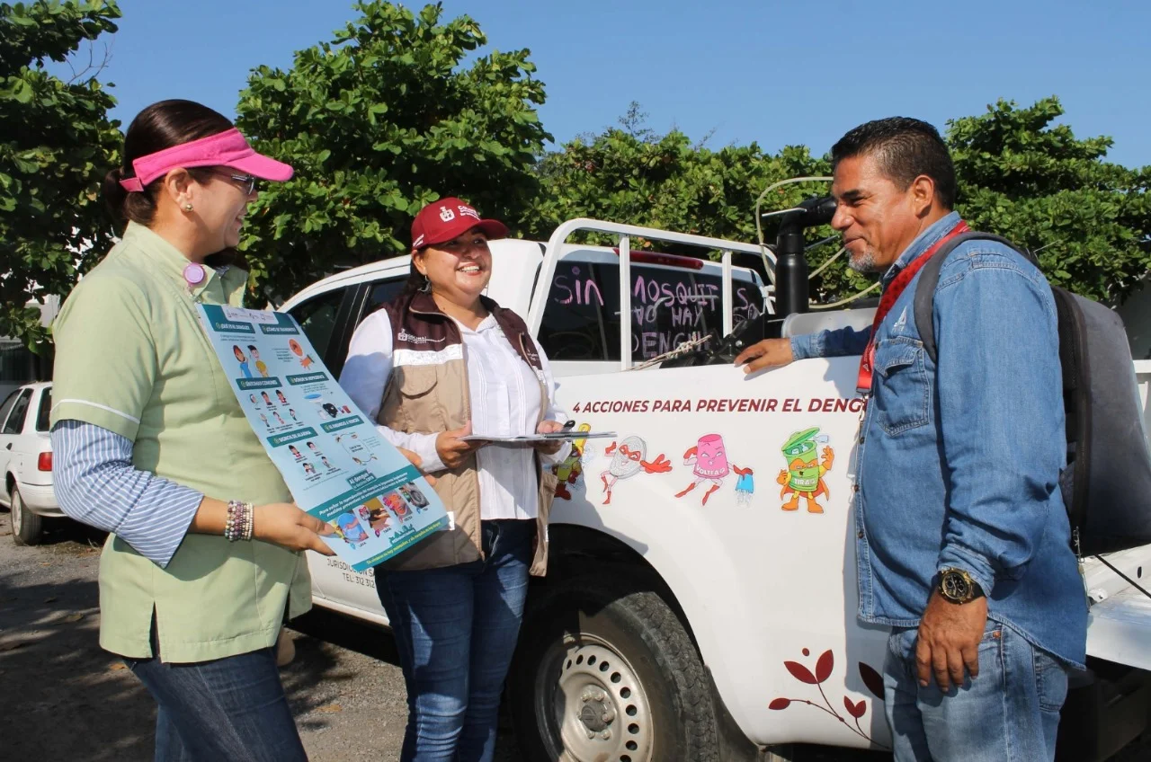 El equipo integrado por personal de las áreas de Salud difunde las medidas de la estrategia ‘Lava, tapa, voltea y tira’ para la eliminación de criaderos donde se reproduzca el mosco transmisor de la enfermedad, así como recorridos por las áreas cercanas, para la identificación de reservorios y aplicación de larvicida.