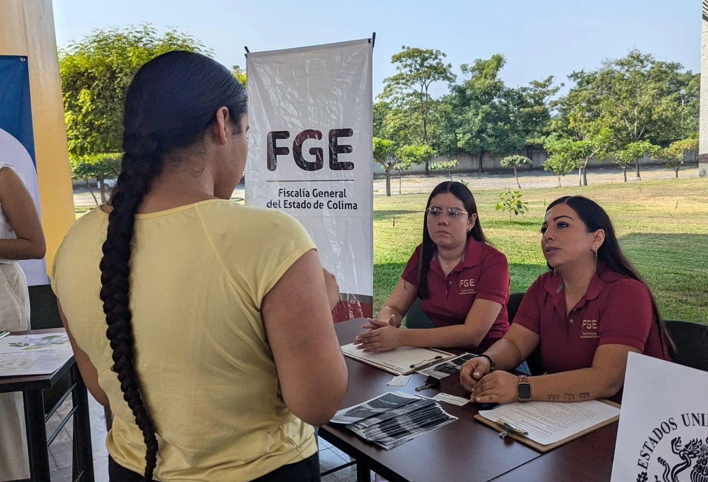 Hoy, la Fiscalía General del Estado de Colima a través de la Dirección de Capacitación y Formación Profesional y del Centro de Justicia para las Mujeres (CJM), participó en la Feria de Servicio Social Constitucional organizada por la Facultad de Derecho de la Universidad de Colima. El objetivo de la asistencia fue ofrecer a las y los estudiantes una interacción directa con diversas dependencias públicas, permitiéndoles conocer de cerca las actividades que se realizan en la institución y cómo pueden contribuir a la justicia en nuestro Estado. Asimismo, se atendieron dudas para la decisión adecuada respecto al lugar en donde deseen realizar su servicio social constitucional.