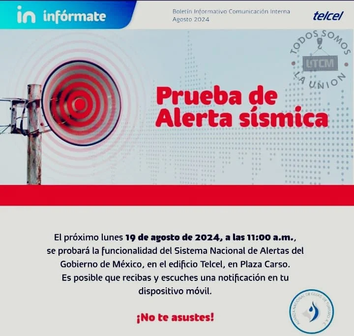 Mediante un comunicado, Telcel informó que este ejercicio se realizará el 19 de agosto en punto de las 11:00 horas.