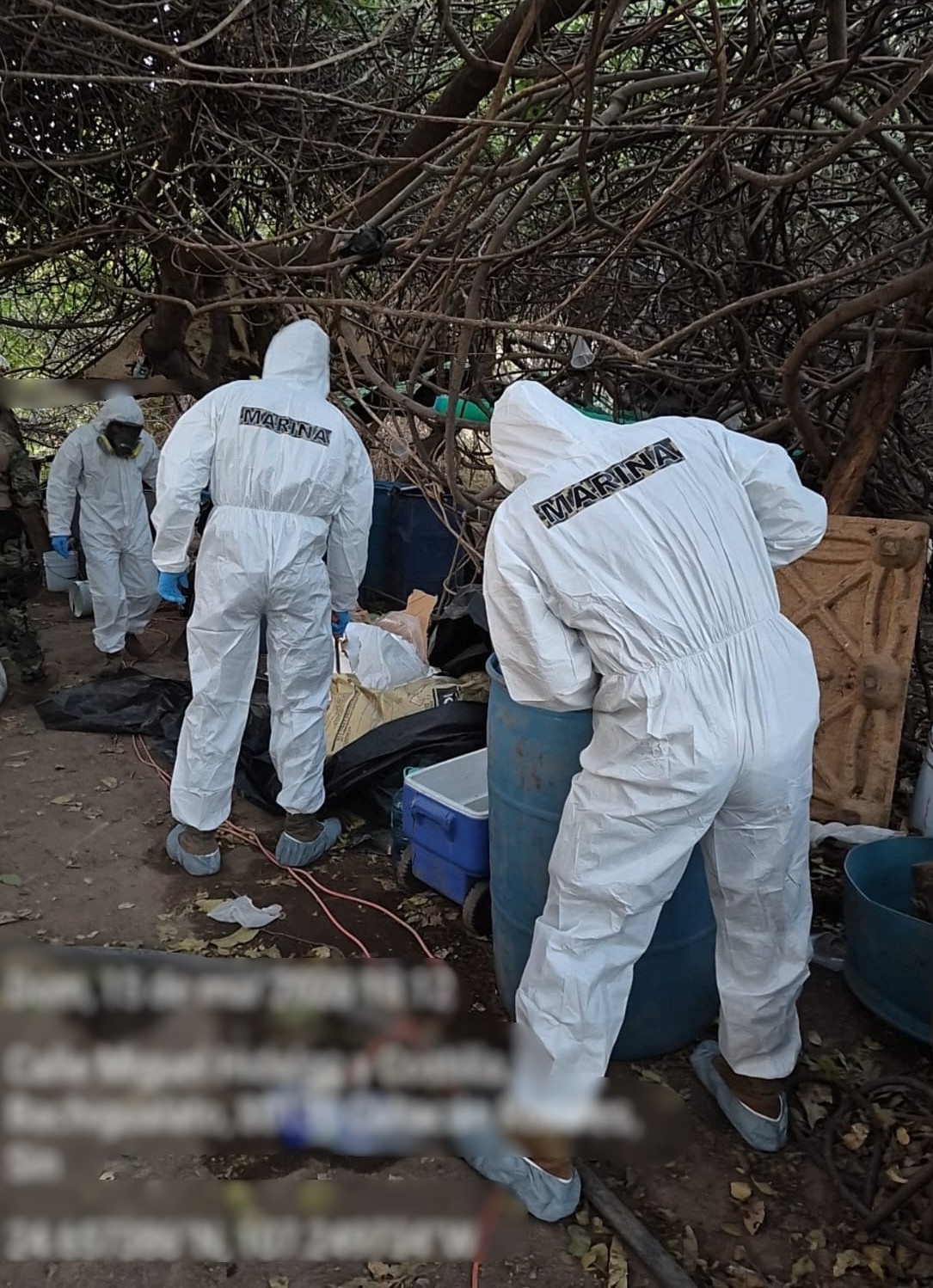 Topolobampo, Sinaloa. – La Secretaría de Marina a través de la Armada de México, por conducto de la Octava Zona Naval, informa que en días pasados, elementos navales en coordinación con personal de la Secretaría de Seguridad y Protección Ciudadana, localizaron y neutralizaron un laboratorio clandestino dedicado a la producción de metanfetamina, en inmediaciones del poblado “El Tule”, municipio de Culiacán, Sinaloa.