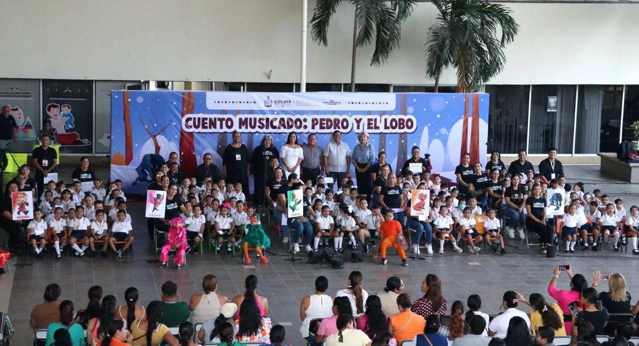La Secretaría de Educación y Cultura del Gobierno del Estado de Colima llevó a cabo la presentación del clásico cuento infantil ‘Pedro y el lobo’ de Serguéi Prokófiev, en el cual participaron 161 alumnas y alumnos de 28 planteles de nivel preescolar, como una muestra de los conocimientos y habilidades adquiridos en el campo de la educación musical.
