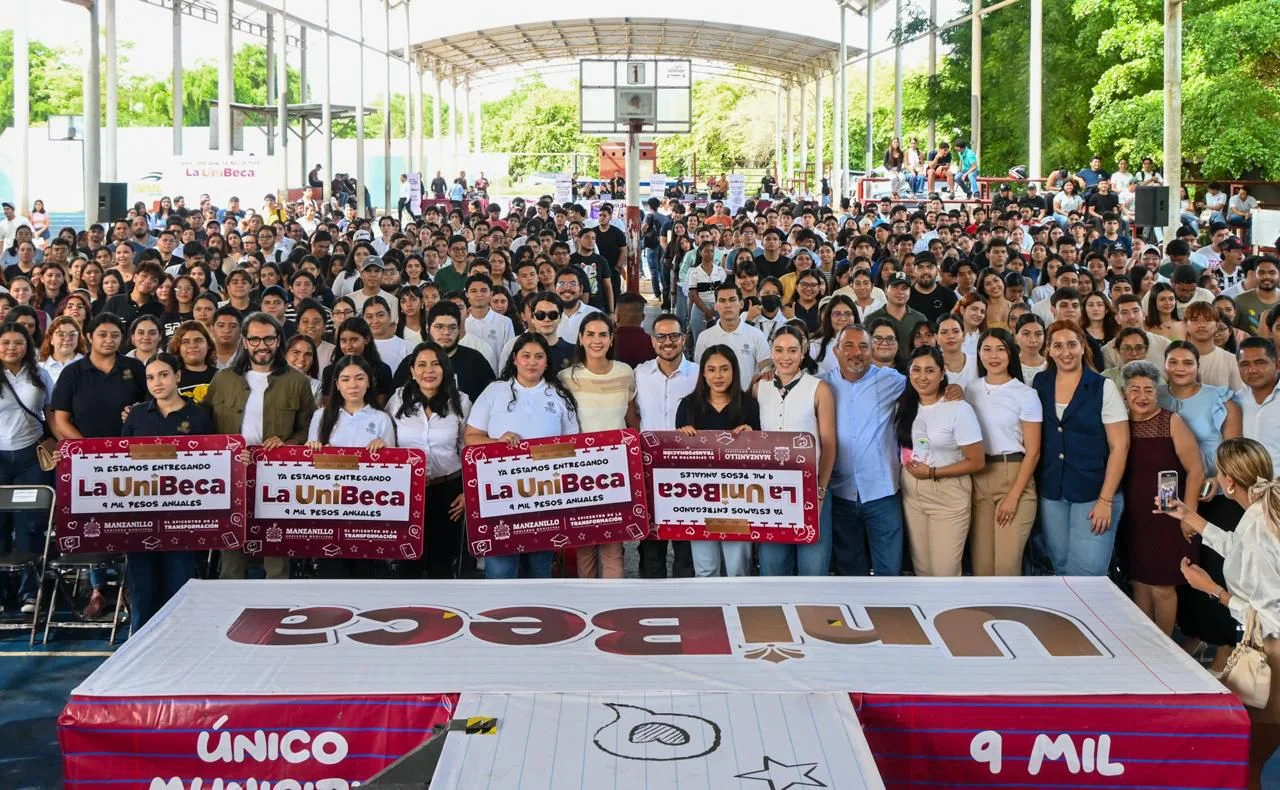 La mañana de este miércoles, la presidenta municipal de Manzanillo, Rosi Bayardo, realizó la entrega de tarjetas del programa UniBeca a más de 700 estudiantes de las facultades de Ciencias Marinas, Contabilidad y Administración de la Universidad de Colima, campus El Naranjo.