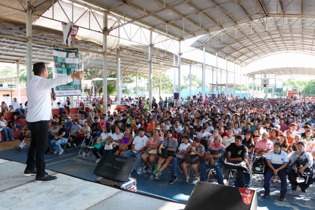 El evento fue encabezado por Julio León, Coordinador Nacional de Becas Bienestar, quien previamente recorrió comunidades rurales y cabeceras municipales en Manzanillo y Minatitlán.