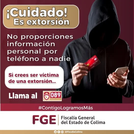 Podrías estar frente a una extorsión. Si tienes dudas, mejor cuelga y llama al 089. #Denuncia089 #FGEColima #ContigoLogramosMás #TodoUnEquipoAFavorDeLaJusticia