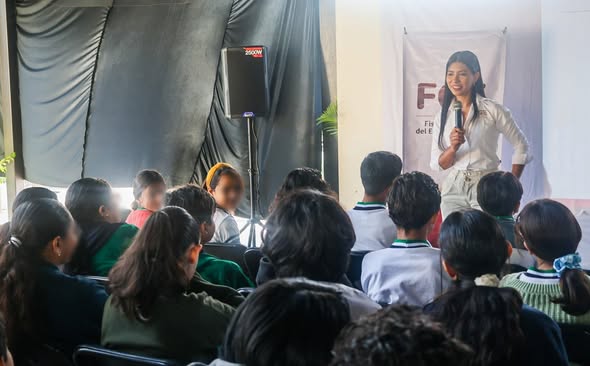 Las y los estudiantes recibieron información y recomendaciones para identificar y prevenir este tipo de delitos, así como para fomentar la denuncia oportuna ante cualquier situación de riesgo.