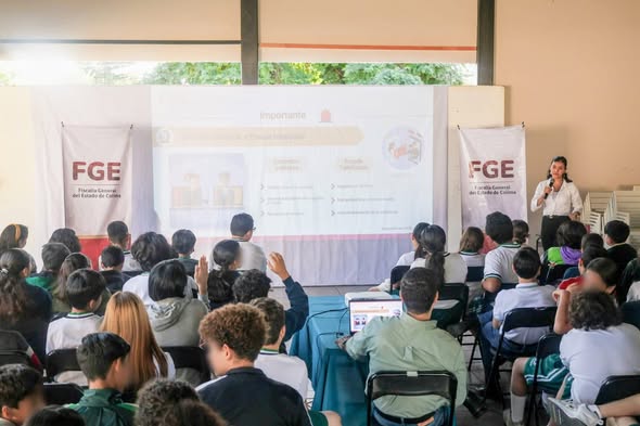 Este martes, personal de la Dirección de Prevención del Delito y Atención a Víctimas de la Fiscalía General del Estado de Colima acudió al Colegio Gandhi, nivel secundaria, para impartir una charla informativa sobre los temas de extorsión telefónica y secuestro virtual.