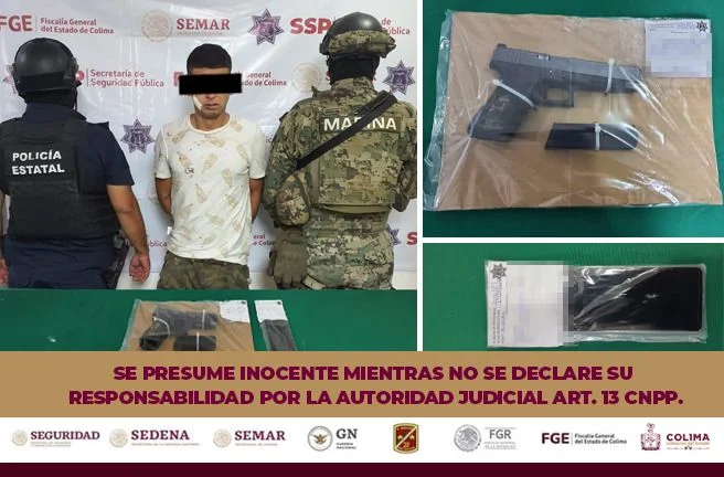 La Secretaría de Seguridad Pública (SSP) del Gobierno del Estado de Colima informa que, en coordinación con la Secretaría de Marina Armada de México (Semar), elementos de la Policía Estatal Preventiva (PEP) detuvieron en el municipio de Armería a un masculino por los delitos de homicidio en grado de tentativa y violación a la Ley Federal de Armas de Fuego y Explosivos.
