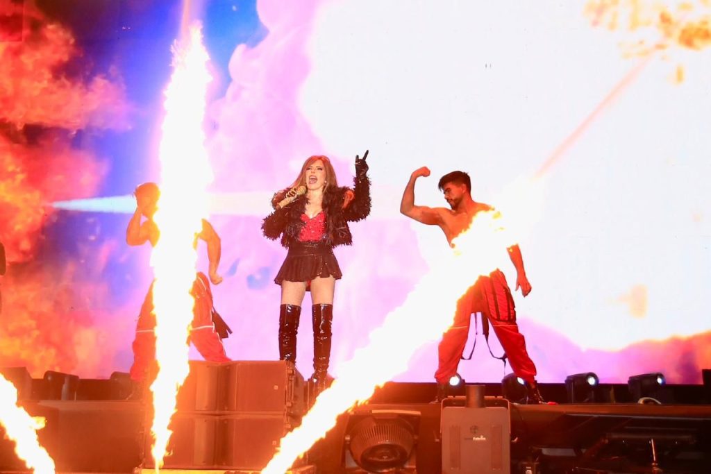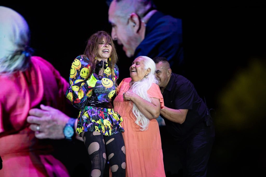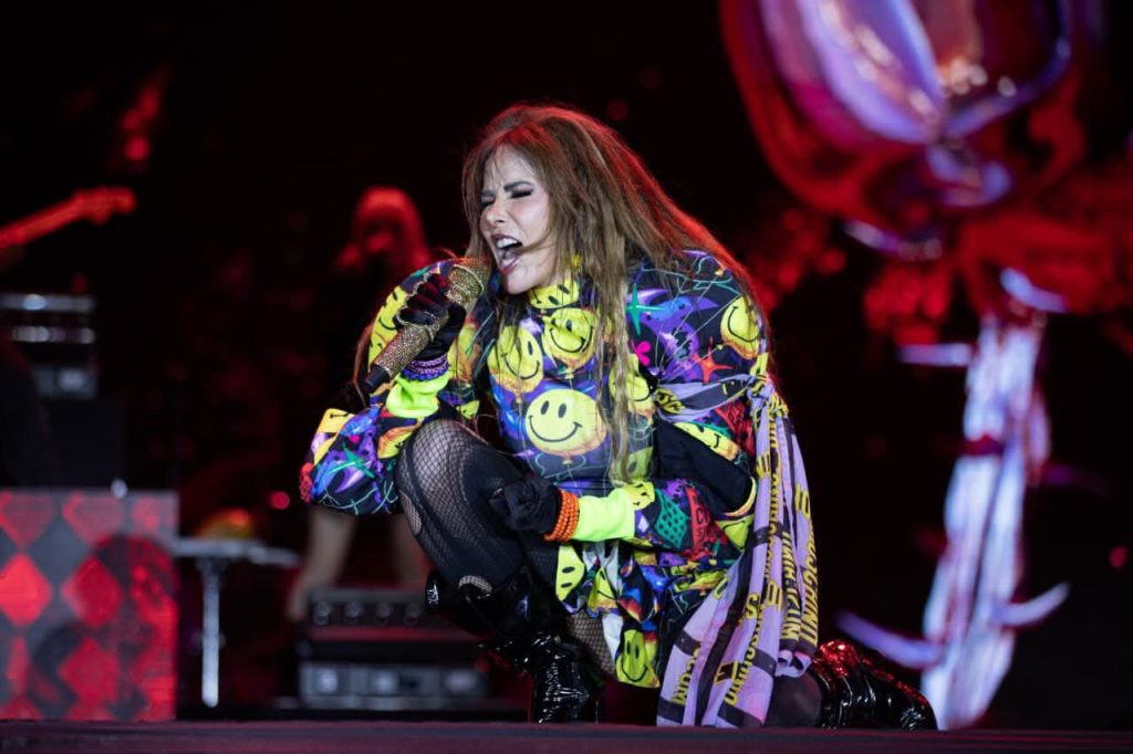 Desde su aparición en el escenario, la cantante regiomontana fue recibida entre aplausos, gritos y una ovación multitudinaria que marcó el inicio de una noche inolvidable. Temas icónicos como Pelo suelto, Dr. Psiquiatra, Todos me miran y Con los ojos cerrados, pusieron a cantar y bailar al público que abarrotó el Foro Principal del recinto ferial.