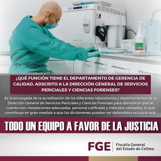 Es la encargada de la acreditación de los diferentes laboratorios y departamentos de la Dirección General de Servicios Periciales y Ciencias Forenses para demostrar que se cuenta con: instalaciones adecuadas, personal calificado y métodos validos, lo que contribuye en gran medida a que los dictámenes pueden ser defendidos en juicio oral